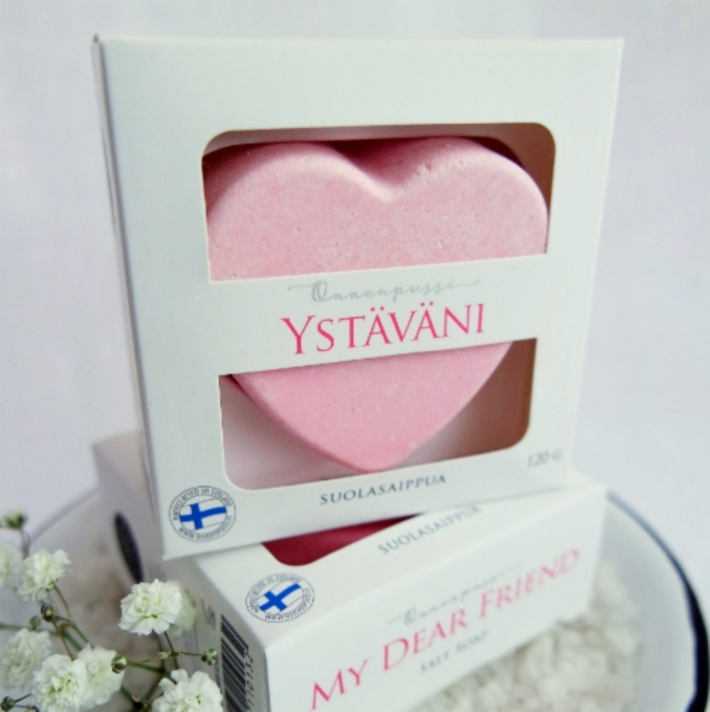 Parhaita lahjoja maailmassa, on ystävä iloa jakamassa. Tämä kevyesti puolukalta ja marjapuurolta tuoksuva saippua on sekoitus juuri sitä. Iloa kasvoilla, onnea sydämessä. Ystäväni suolasaippua jättää iholle puhtaan pehmeän tunteen ja tuoksun.